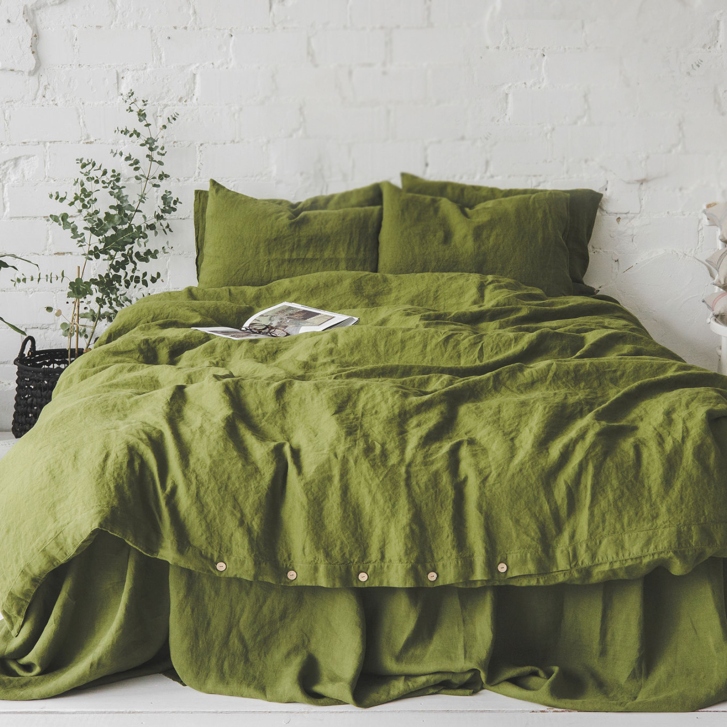 Green Moss Stonewashed Linen Bedding Set